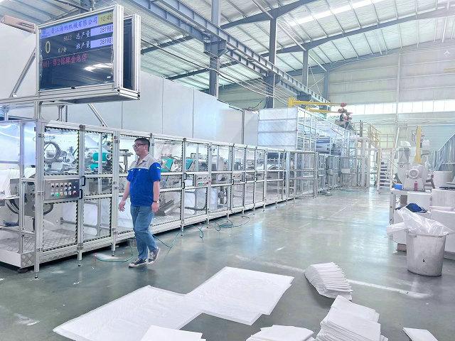 This is Disposable Underpad Machine in Bahrain. This machine can make 5 sizes, the min. size is 600mm x 600mm and the max size is 900mm x 1200mm . In this machine, we have a special desined pulp loading system, which makes customer easy to load the pulp. This machine designed for produce: Adult underpad, Pet underpad and Baby underpad. This new machine will helps customer to develop more market in his country.