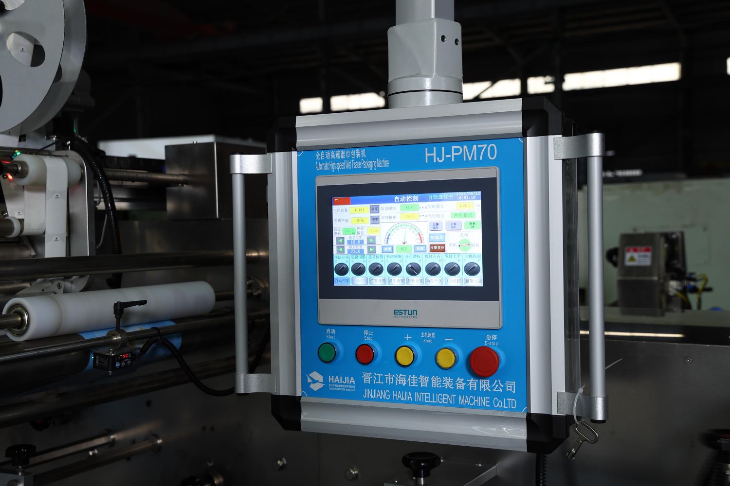 Full Servo Wet Wipes Production Line (Big Jumbo Rolls) is specially designed for big jumbo roll non-woven materials, integrating automatic splicing, high-speed folding, and precision liquid adding. Driven by a servo control system, it ensures high folding accuracy and non-stop reel changeover, enabling truly continuous production. HJ-WP12A Full Automatic Splicing Wet Wipes Folding Machine (Big Jumbo Roll) can be seamlessly connected with the HJ-PM70 Automatic Packaging Machine and the HJ-LA75 Automatic Lidding Machine to form a complete wet wipes production line.